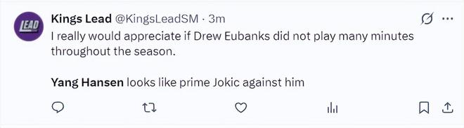 国王媒体:如果新赛季球队减少尤班克斯的登场时间我会非常感谢,因为他在场已经让杨瀚森打出了约基奇的表现。